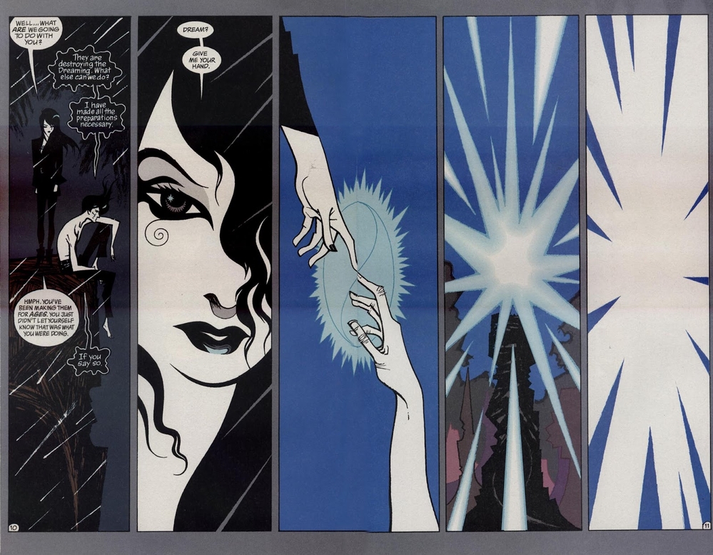The Dreaming là một thế giới trừu tượng, là nơi luôn thay đổi theo cách suy nghĩ của mỗi người và cũng là nơi mà giấc mộng, ác mộng và mọi câu chuyện, mọi nhân vật từ trí tưởng tượng đan xen với nhau. Thần thánh sinh ra từ những câu chuyện, và tất cả bọn họ đều sinh ra từ The Dreaming. Đến khi họ mất đi, họ cũng sẽ trở về vương quốc này.