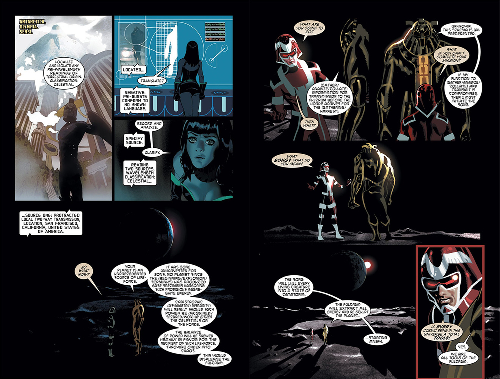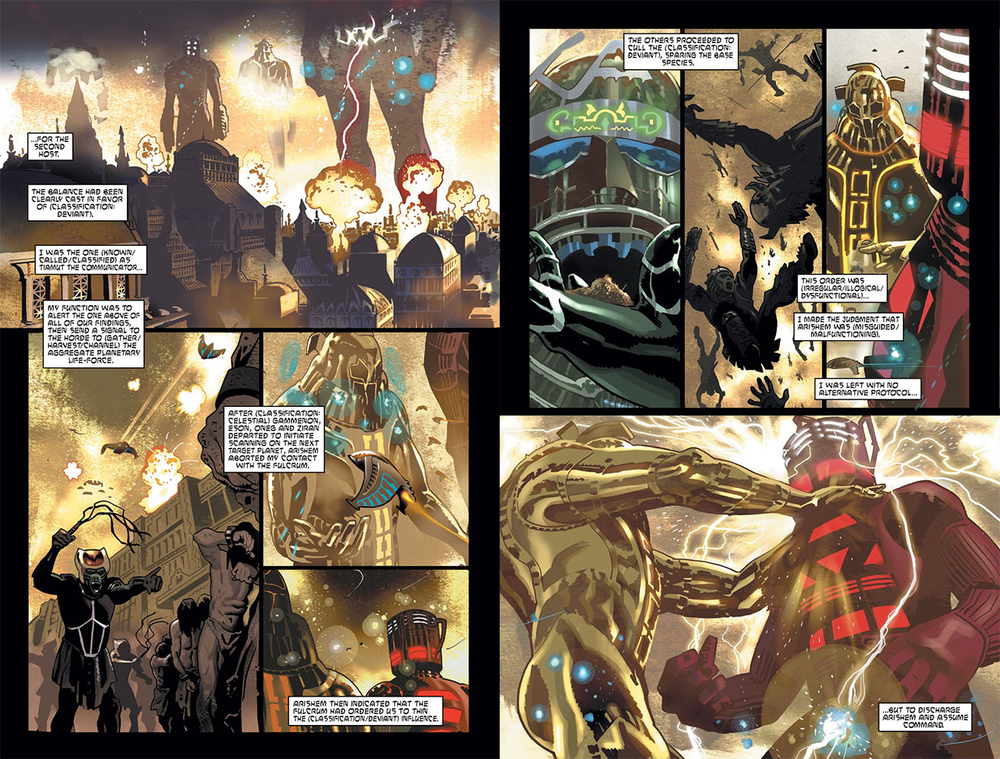 Cụ thể thì khi đó Deviants là loài thống trị Trái Đất, nên Tiamut muốn gọi đám châu chấu không gian Horde để bắt đầu thu hoạch sinh lực tổng hợp của hành tinh này theo đúng kế hoạch mà “Fulcrum” (thực thể tạo ra Celestials trước khi retcon) giao phó. Tuy nhiên, Arishem vì một lý do nào đó mà đã quyết định làm trái với giao thức, khi tiêu diệt vô số Deviants bằng “Đại Hồng Thủy” và hủy bỏ mệnh lệnh ấy.
