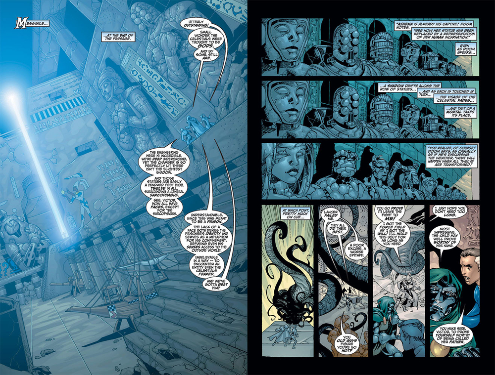 Trong phim, Tiamut không có cơ hội để thể hiện bất cứ điều gì. Việc ông ta thức tỉnh cũng chỉ ghê gớm ở chỗ có thể khiến Trái Đất bị hủy diệt, còn việc ông ta “tạch” thì cũng chỉ khiến Arishem kinh động mà thôi. Nhưng ở trong truyện, việc Tiamut thức tỉnh thực sự là một chuyện vô cùng kinh khủng, nên Arishem cùng những Celestial khác mới phải tạo ra một phong ấn kỳ công như trên.