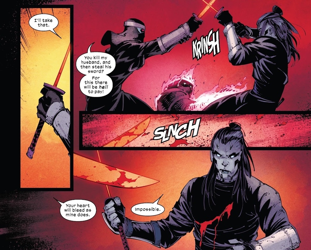 Trong X-Force (2019) #13, linh hồn Muramasa trong quãng thời gian ở địa ngục đã rèn tiếp ra 2 thanh kiếm mới, do bị tổ chức The Hand ép buộc phải làm cho một cặp đôi sắp cưới. Kết quả là chúng chấm dứt luôn linh hồn của ông, nhưng ngay sau đó thì Wolverine cùng Solem đã lao tới và xử chúng, cướp lấy cặp kiếm này. Theo thỏa thuận, họ đã chia nhau mỗi người một thanh rồi trở về nhà, nhằm chuẩn bị cho trận so kiếm giữa Krakoa và Arakko.