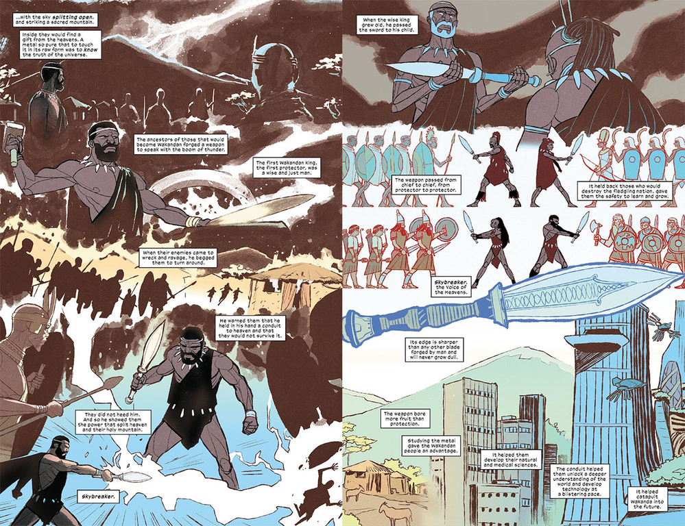 Skybreaker là thanh đoản kiếm huyền thoại, với lưỡi được làm từ Vibranium và chuôi làm từ gỗ đen châu Phi bọc da báo. Nó được Bashenga (vị vua đầu tiên của Wakanda) tạo ra khi nghiên cứu thứ kim loại đó tại một lò rèn ở miệng núi lửa. Kể từ đó, nó được coi là thanh “thượng phương bảo kiếm” được truyền từ đời vua này sang đời vua khác, chỉ vua mới có quyền chạm vào nó và nó cũng là vật bảo vệ cho Wakanda kể từ thời cổ đại.