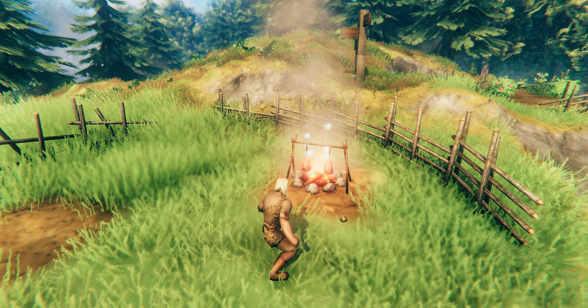 - Cooked meat có thể nấu từ Raw Meat mà bạn kiếm từ Heo rừng và Hươu