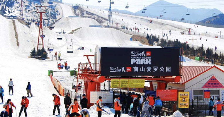 Nanshan nằm cách Bắc Kinh khoảng 60 km, đặc biệt phù hợp cho gia đình và nhóm bạn trẻ. Với 25 làn trượt được phân cấp khoa học, ai cũng có thể tìm được đường trượt phù hợp với trình độ của mình. Nanshan còn có khu vực dành cho trẻ em, trường dạy trượt bài bản và nhiều dịch vụ giải trí. Khi tuyết rơi dày, không gian Nanshan giống như một ngôi làng Bắc Âu thu nhỏ.
