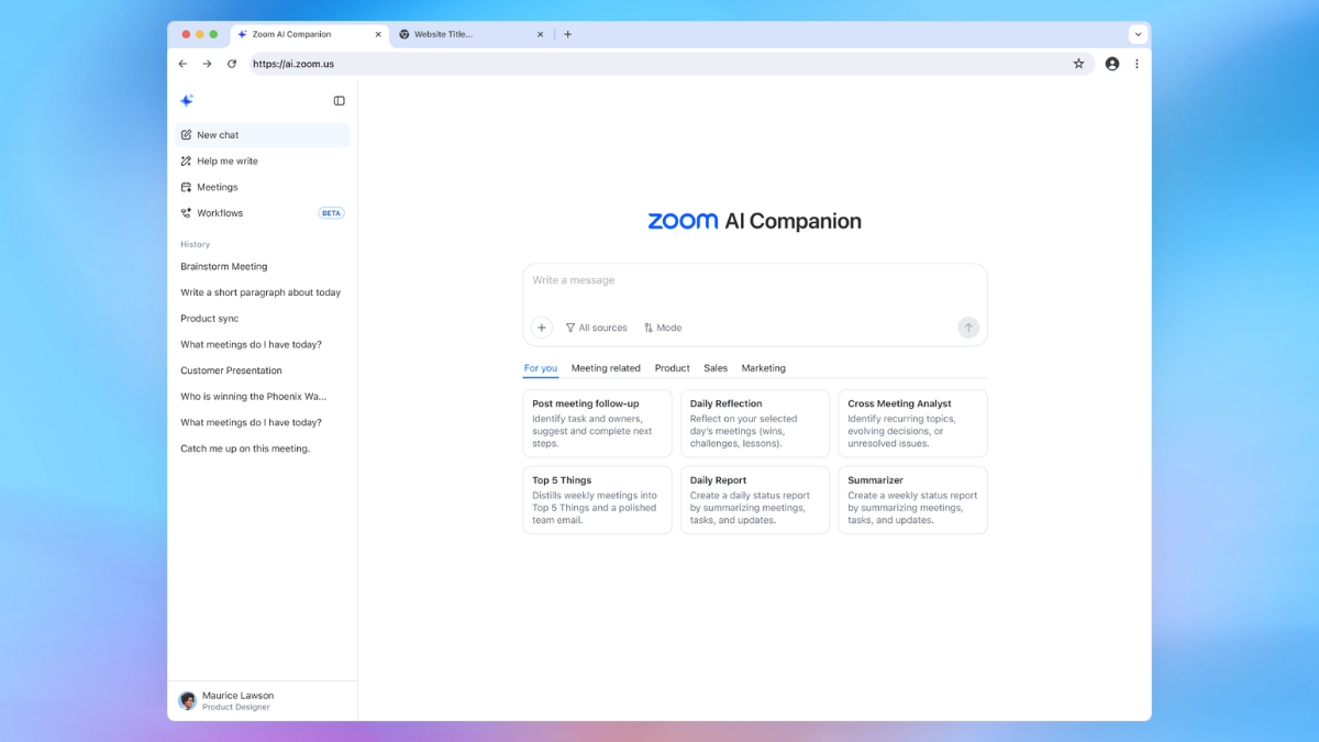 Một điểm đáng chú ý trong lần cập nhật này là Zoom đã thiết kế lại giao diện web để AI Companion trở nên dễ tiếp cận hơn. Trên giao diện mới, người dùng sẽ thấy các gợi ý câu lệnh mẫu, giúp nhanh chóng hiểu cách đặt câu hỏi và khai thác trợ lý AI hiệu quả hơn.